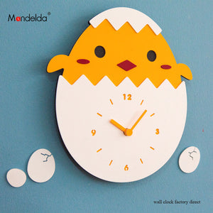 Free Shipping 12 inch Modern Cute Wall Clock Creative Kids Cartoon Chick Watch Silent Home Decorative Wooden Living Room Clock
