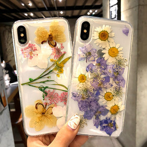 Real Dried Flower Phone Case for iPhone X Transparent Soft TPU Handsome Pressed Back Cover for iPhone X 8 7 6S Plus Cases Women